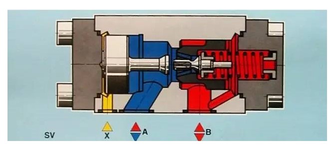 在某些場合,需要單向閥允許油流反向通過,這時即采用液控式單向閥。液控式單向閥結(jié)構(gòu)和符號如圖5—2所示。它主要由直角單向閥和控制活塞兩部分組成。當下蓋7上的控制油口元壓力油時,它僅是一個普通單向閥,只允許油液從A流向B;當控制油口通人壓力油時,則控制活塞就被頂起,通過頂桿使閥芯1強制打開,允許油液由B向A反向流過。