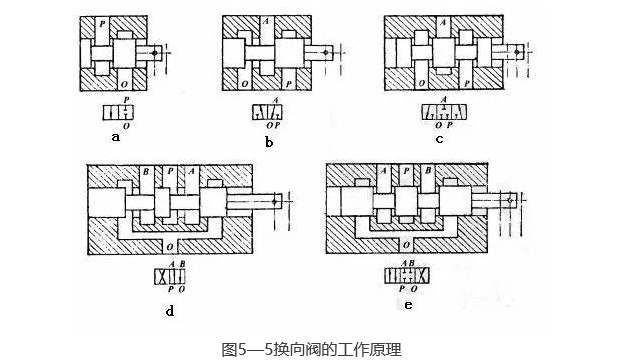 換向閥的作用是利用閥芯和閥體的相對運動來接通、關(guān)閉油路或變換油液通向執(zhí)行元件的流動方向,以使執(zhí)行元件啟動、停止或變換運動方向。
