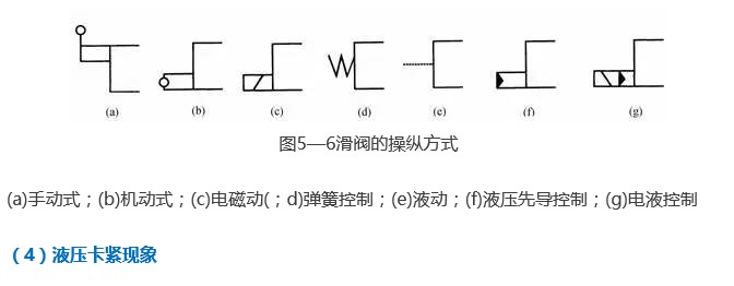 由于滑閥式換向閥閥芯與閥體孔的加工誤差或裝配時中心線不重合,進入滑閥配合間隙中的壓力油將對閥芯產(chǎn)生不平衡的徑向力,而使閥芯的偏心加大,最終使閥芯緊貼在孔壁上,使得操縱滑閥運動發(fā)生困難,甚至卡死,這種現(xiàn)象稱作液壓卡緊。下圖5—7是液壓卡緊原理圖。