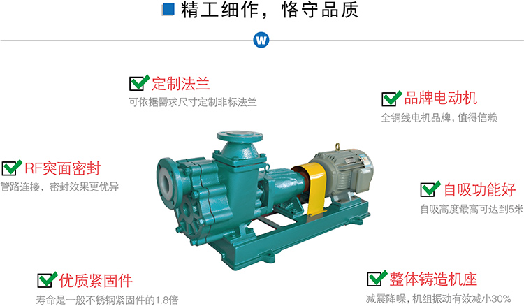 FZB氟塑料自吸泵又叫襯氟自吸泵過流部件均采用氟塑料制成,軸封采用機械密封,對于輸送含雜質顆粒介質時,可配用無冷卻水單端面硬對硬(碳化硅對碳化硅)機械密封,所以用戶選型時需考慮到介質中的固體含量,方便可調。運行過程中免去了普通離心泵須倒灌安裝、灌引水、裝底閥等不便因素。這種防腐自吸泵廣泛用于酸洗工藝、制酸制堿、化工、農藥、造紙、電子等行業。